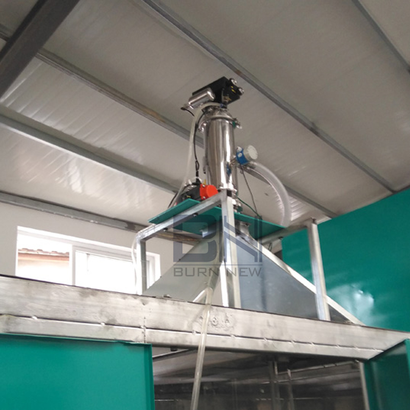 c) -料倉充滿物料時,真空泵自動關閉,輸送設備內的壓力達到平衡。放料閥開啟,物料通過出料口流出,并直接落入儲料容器。